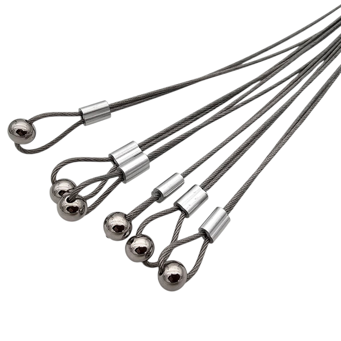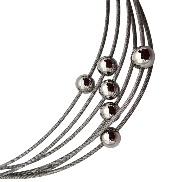 6 Edelstahlkugeln (Ø8 mm) eingebunden in 1,5 mm Edelstahldraht mit PVC umwickelt